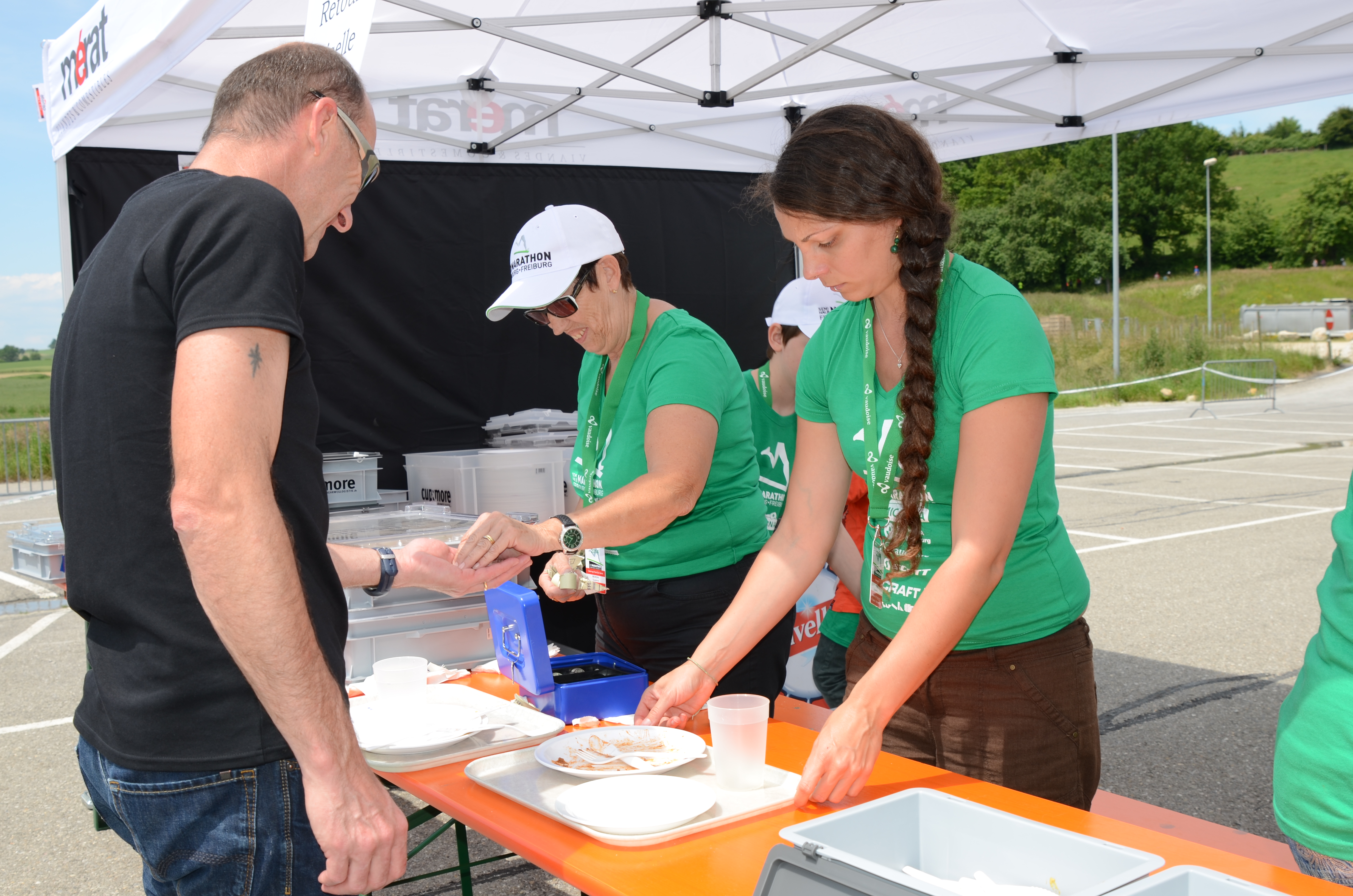 Ravitaillement des coureurs avec de l’eau du robinet.